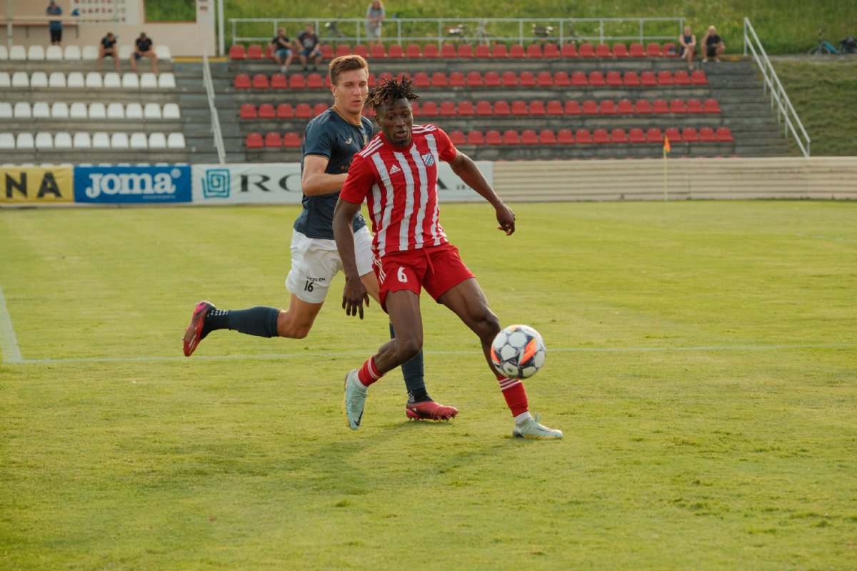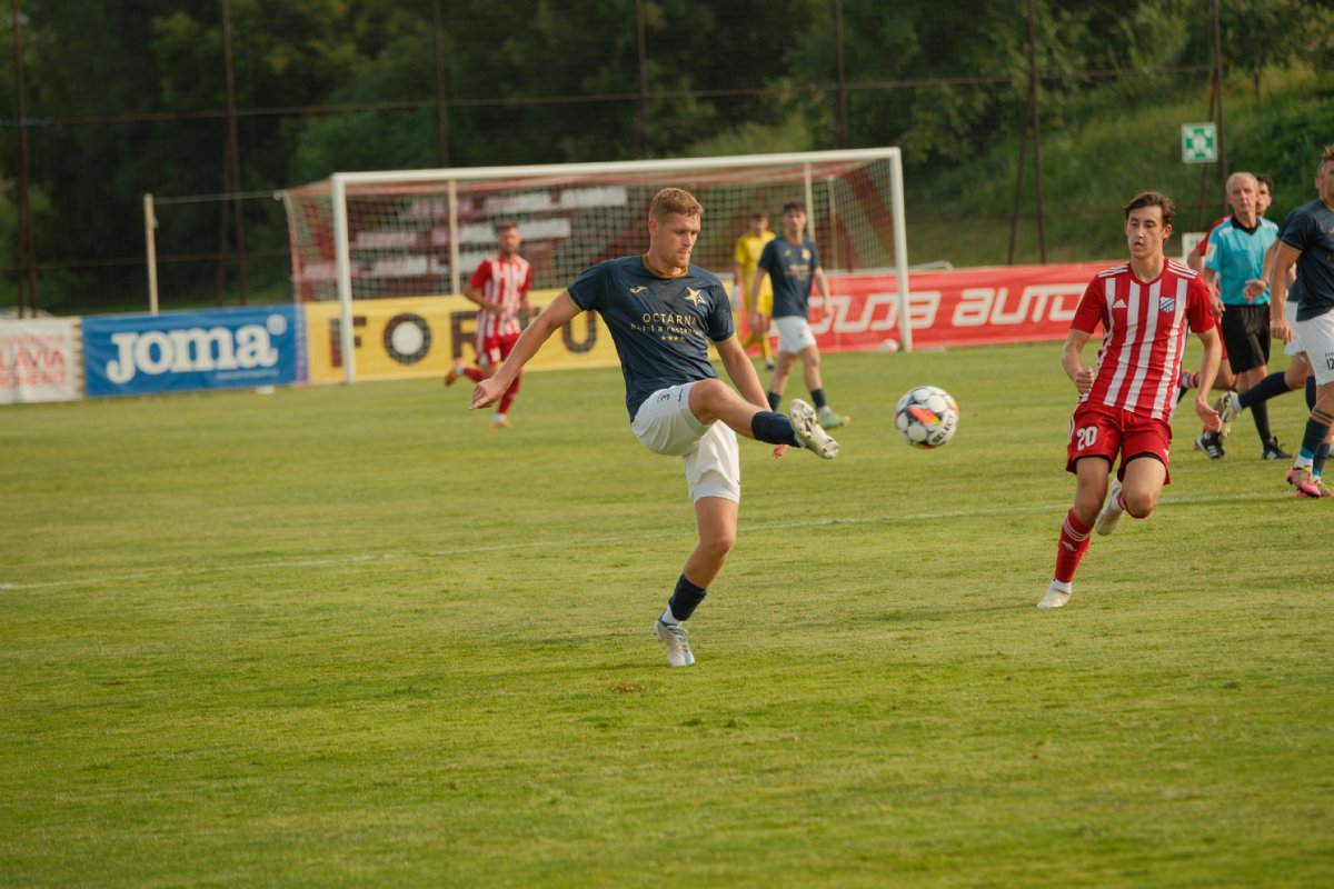V samotném utkání měli hosté delší dobu mírnou herní převahu, byli kvalitnější na míči a vypadali lépe i běžecky. Také proto šli po zásluze do vedení, když po půlhodince hry zakončili pěknou kombinační akci brankou. Hosté pak ještě orazítkovali tyč. Hodně jejich akcí šlo po jejich levé lajně, kde byl aktivní Charles Stanley Chukwudi, který na podzim 2023 hrál za Hanáky druhou ligu. Domácí se i přes trápení v mezihře dostali do dobré šance Cupákem, ale jeho hlavička šla nad. Až v poslední třetině zápasu Hanáci přidali a vytvořili si převahu. Tu korunoval vyrovnávající brankou Bewene, který se prosadil sám na brankáře po předchozím potažení míče Pospíšilem a po finální přihrávce Chwaszcze. Aktivní Bewene pak po pěkné individuální akci a střele trefil tyč. Stejnou tyč pak v posledních sekundách zápasu trefil Fuksa, kterému gólovou radost zhatila mírná teč hostujícího brankáře.
