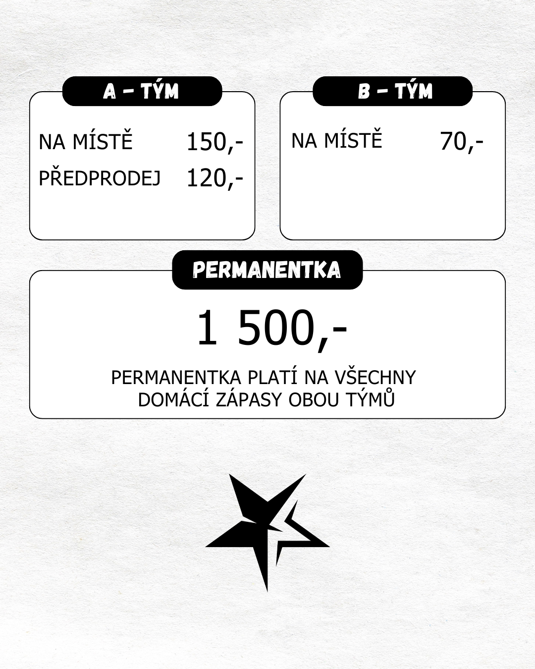 Výše naleznete ceník vstupenek platný pro soutěžní ročník 2025/2026. Vstupenky jsou vždy v prodeji online za zvýhodněnou cenu.