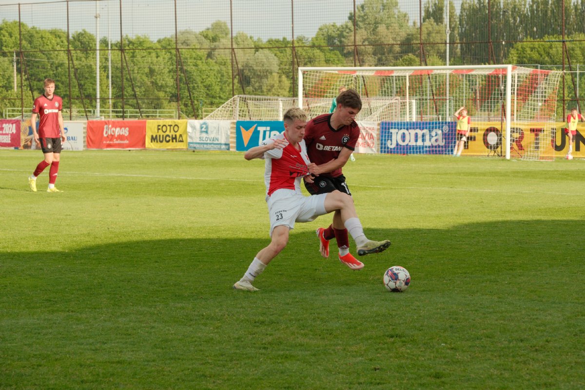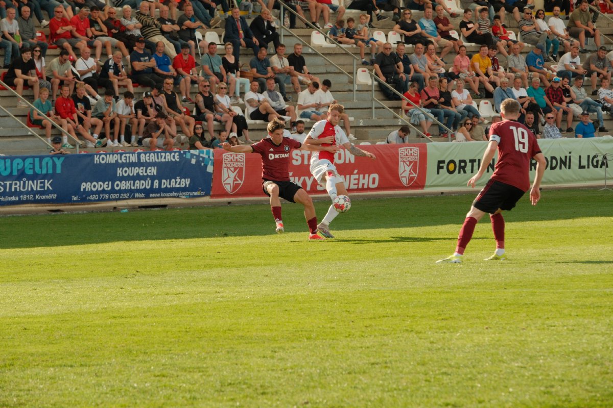 V sobotním odpoledni se na stadionu Jožky Silného odehrál druholigový souboj domácí Hanácké Slavie s rezervou Sparty Praha. I když nešlo o typické prvoligové derby slavných pražských S, tak i zápas sparťanské juniorky s domácí Hanáckou Slavií měl nádech pikantního souboje tradičních barev obou S. V prvním vzájemném zápase hraném na podzim 2023 v Praze se oba celky rozešly smírně 1:1.
