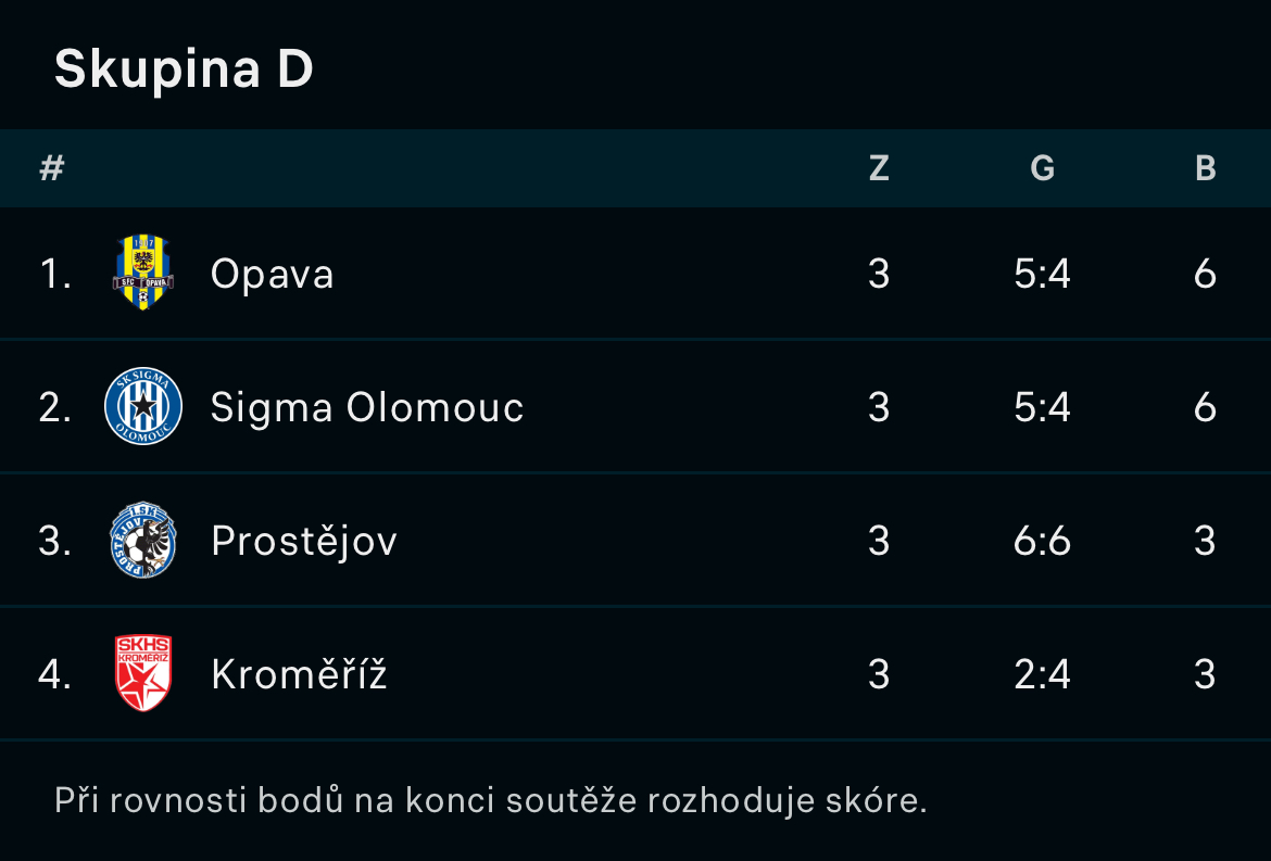 Konečná tabulka skupiny D zimní Tipsport ligy: