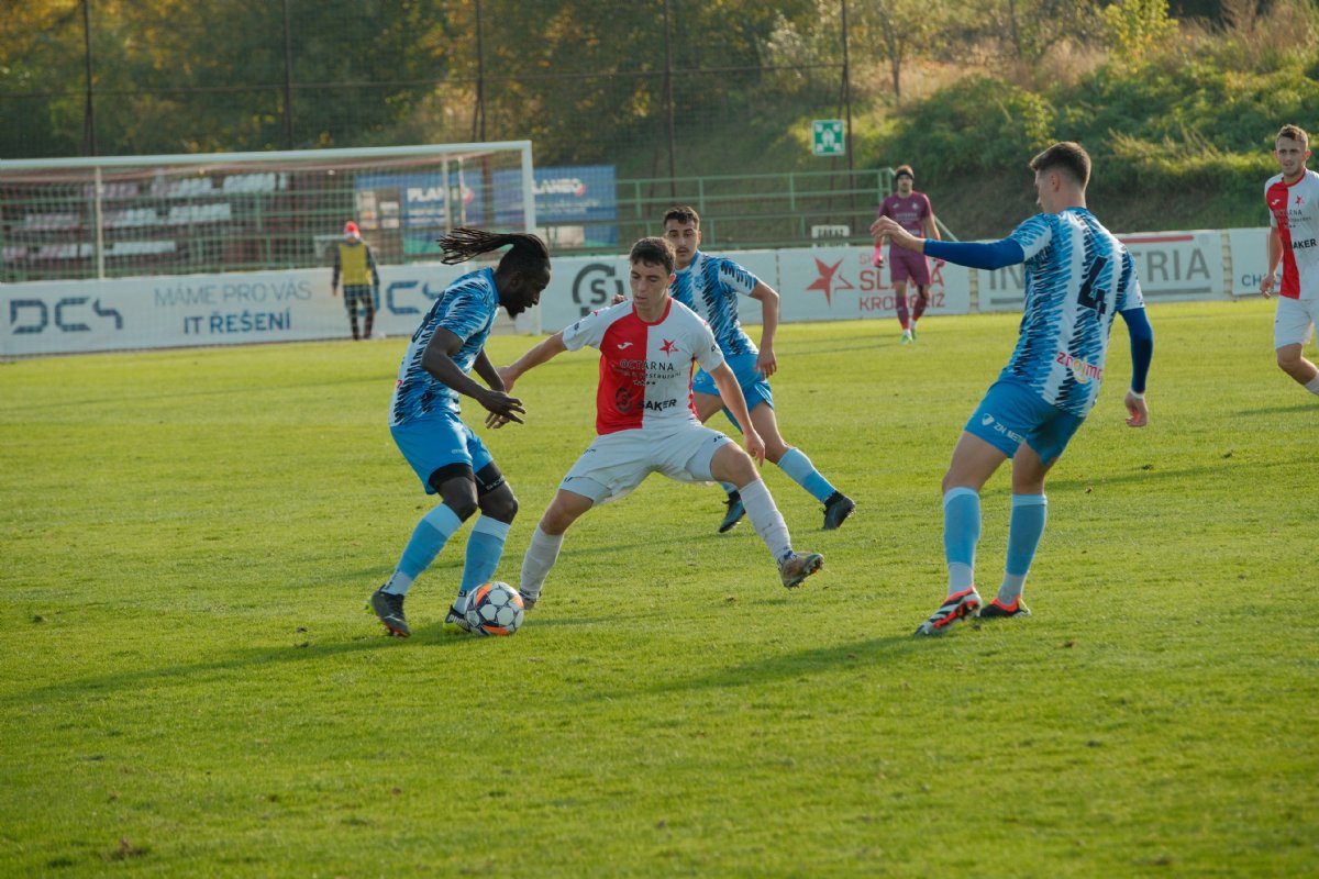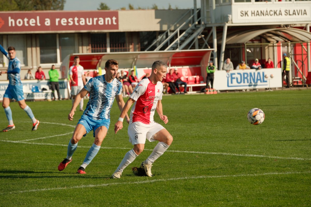 Kroměříž v MSFL dál drží letošní neporazitelnost, potřetí za sebou zvítězila o jediný gól. Hanáci i tak napínavou koncovku zvládli a zaknihovali důležité tři body. Úvod byl ale opatrný, bez vážnějších šancí. První příležitost v zápase měl na kopačce domácí Moučka, ale neuspěl. Znojmo odpovědělo centrem Viegase. Bráněný Vilela se ale k míči nedostal. Skóre otevřel až ve 34. minutě Chwazcz. Domácí forvard se prosadil po rychle rozehrané standardní situaci a po přihrávce Holíka z levé strany, když míč zblízka zatloukl pod břevno. Kroměřížský forvard mohl na konci první půle přidat druhý gól, ale brankář Cruz domácího střelce vychytal. Neuspěl ani Holík. Hanáci se ve druhé půli zaměřili na bránění těsného náskoku, pečlivou defenzivu. Znojmo se snažilo o vyrovnání, více se tlačilo dopředu, ale složitě se prosazovalo. Favorit vyrážel ze zabezpečené defenzivy, hrozil hlavně z brejků. Znojmo zahrozilo jenom střílenými centry, žádnou tutovku nemělo. Domácí měli utkání pod kontrolou. Rozhodnout mohl střídající Bartoš, ale v jasné šanci neuspěl. Vzápětí byl navíc po tvrdém skluzu vyloučen a Kroměříž dohrávala v deseti. Hubený náskok 1:0 nepustila a dál bez prohry vládne třetí lize.