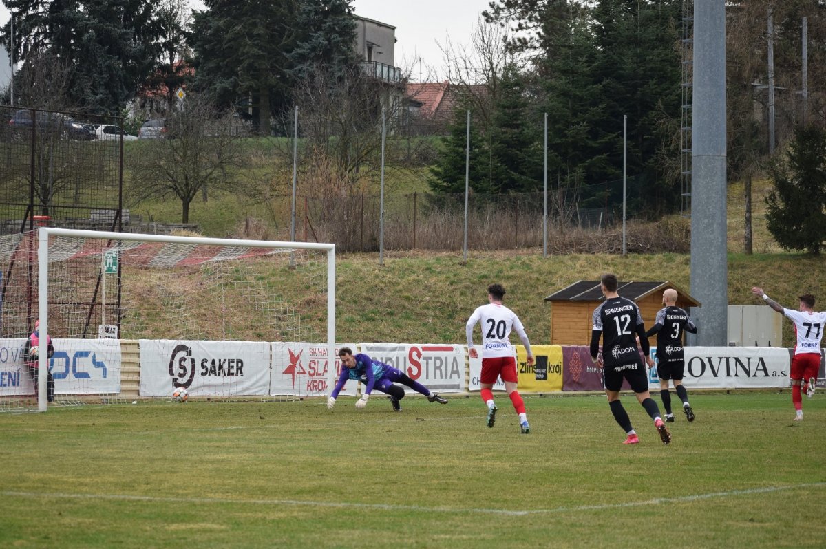 Vítěznou branku utkání 19. kola MSFL, ve kterém oba týmy dohrávaly v desíti, vstřelil čtvrt hodiny před koncem střídající Martin Holek. Vedoucí tým tabulky šel do utkání oslabený o vyloučeného kapitána Matouška, nehrál ani Moučka. Šanci od první minuty dostali Gabriš, Slaměna či Koryčan. Jen mezi náhradníky zůstal Zajíc, Holek či Jambor.